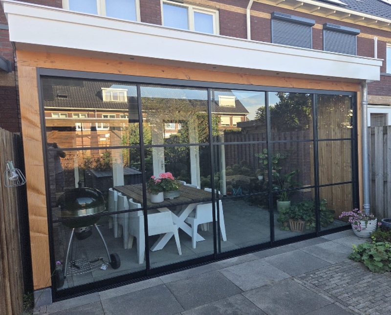 Een veranda die direct aan de woning is gerealiseerd
