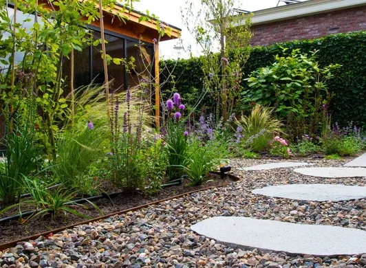 - Resultaat: Naadloze integratie van aanbouw en hovenierswerk.